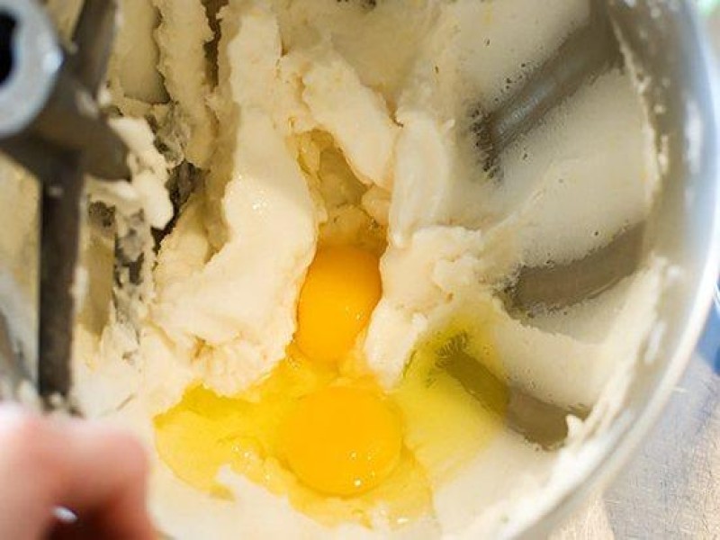 - 8. Đập 2 quả trứng ra 2 tô. Chỉ lấy lòng đỏ trứng. CHo 1 muỗng nước lọc vào.