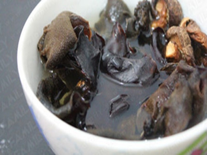 • 1. Ngâm mộc nhĩ với nước ấm trong 30 phút rồi vớt ra rửa qua nước lạnh, để ráo, thái miếng nhỏ.
