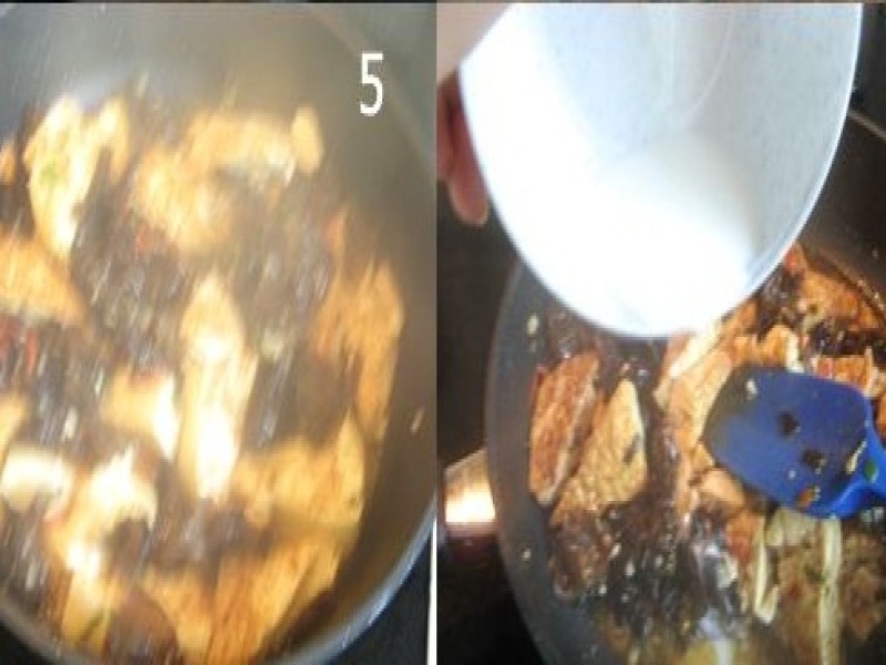 • 4. Sau đó, đổ bột ngô hòa tan vào và nấu tiếp thêm 30 giây. Múc đậu ra bát rồi thưởng thức với cơm nóng.