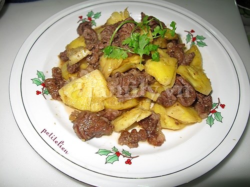 • Thịt bò xào là món quen thuộc, thịt bò xào dứa lại càng quen thuộc, vì vậy mình “gia giảm” thêm tý dưa chuột vào cho khác ;))